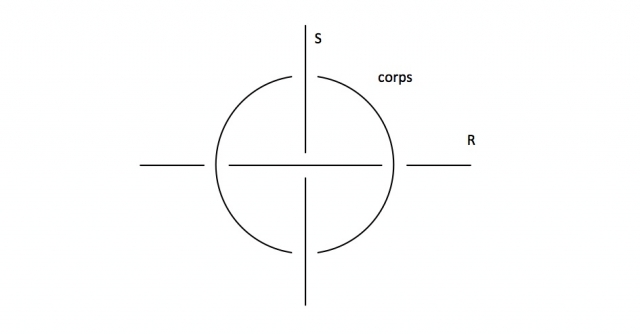 En développant ce schéma, on peut dire que la fonction pulsionnelle fait « exsister » un corps, qui se vit dans un parcours, où alternent les différentes positions. Le corps, « dont il n’y a d’idée comme tel sauf à le briser… » dit Lacan peut être considéré alors comme une fonction se réalisant extentionnellement en termes d’objet petit a, d’images et de discours.
