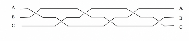 Aussi le sinthome, en tant que nouage, est-il constitutif du sujet, du symptôme, des discours, du corps, des constituants de l’inconscient,... Sans même passer au nœud borroméen à 4 ronds, la valeur sinthomatique du schématisme borroméen (je le prends comme nouage dans le nœud, car il n’est pas identifiable aux ronds eux-mêmes) se prolonge, donc échappe encore, dans l’articulation des ronds entre eux, sinon dans ces ronds eux-mêmes, si l’on veut bien les considérer autrement que comme des cercles triviaux. Ce nouage est ainsi donné au travers de l’artefact des six dessus-dessous dans la représentation du nœud borroméen plongé dans un tore surface.